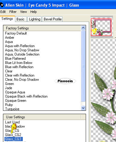 Metti il preset Glass_CG3.f1s nella cartella del filtri: Alien Skin Eye Candy 5 Impact>Settings>Glass.
