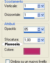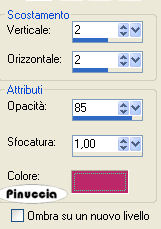 Effetti>Effetti 3D>Sfalsa ombra, con il colore precedente #bc286a.