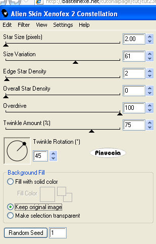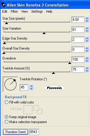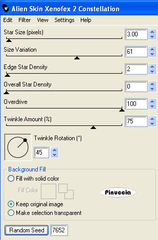 Ripeti l'Effetto Constellation, con Star Size a 2,00, cliccando una volta su Random Seed.