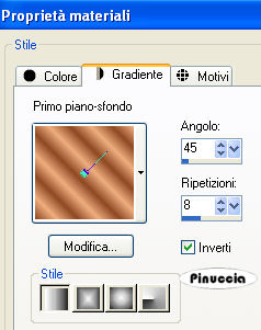 Nella paletta dei materiali riporta i colori iniziali e cambia i settaggi del gradiente.