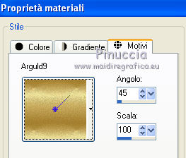 Passa il colore di primo piano a Motivi e seleziona il motivo oro Arguld9 con i seguenti settaggi.