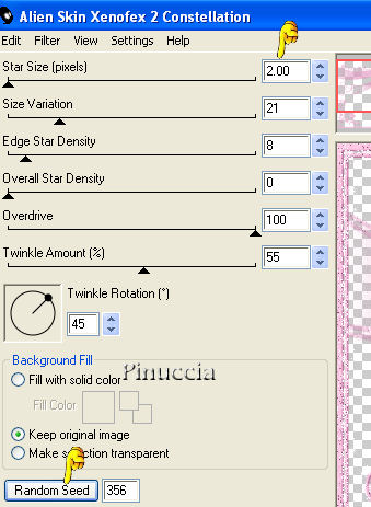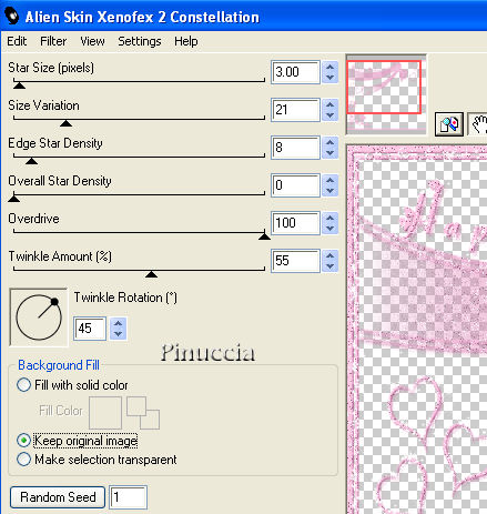 Ripeti l'Effetto Constellation, cambiando star size con 2,0 e cliccando una volta su Random Seed.