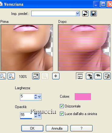 Effetti>Effetti di trama>Veneziana, con il colore #f577c7.