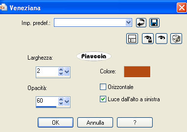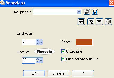 Effetti>Effetti di trama>Veneziana, con i settaggi precedenti.