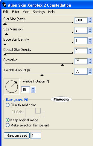 Ripeti l'Effetto Constellation, con gli stessi settaggi, ma cliccando una volta su Random Seed.