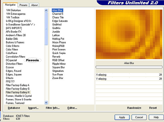 2. Effetti>Plugins>Filters Unlimited 2.0 - Filter Factory Gallery H - Alias Blur: