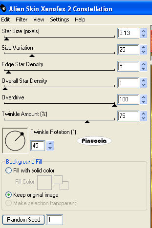 Ripeti l'Effetto Constellation, con gli stessi settaggi, ma cliccando una volta su Random Seed.