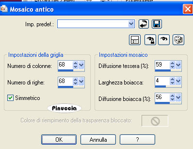 Effetti>Effetti di trama>Mosaico antico, con i settaggi pecedenti.