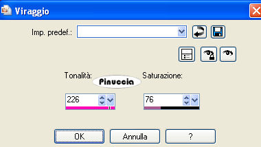 Regola>Tonalità e saturazione>Viraggio, con i settaggi precedenti.