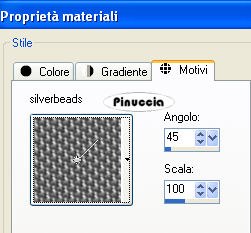 Passa il colore di primo piano a Motivi e seleziona il motivo silverbeads con i seguenti settaggi: