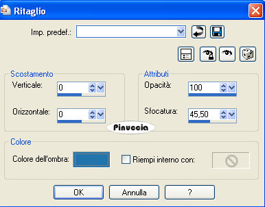 Effetti>Plugins>Graphics Plus - Cross Shadow, con i settaggi standard - 2 volte.