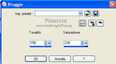 Regola>Tonalità e saturazione>Viraggio, con i settaggi precedenti.