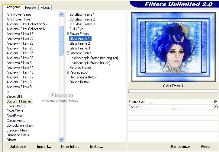 Effetti>Plugins>Filters Unlimited 2.0 - Buttons & Frames - Glass Frame 1.