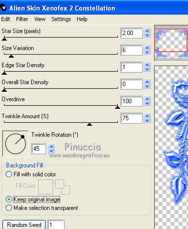 Ripeti l'Effetto Constellation, con gli stessi settaggi, ma cliccando una volta su Random Seed.