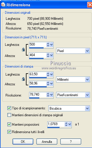 3. Immagine>Ridimensiona, a 500 pixels di larghezza.
