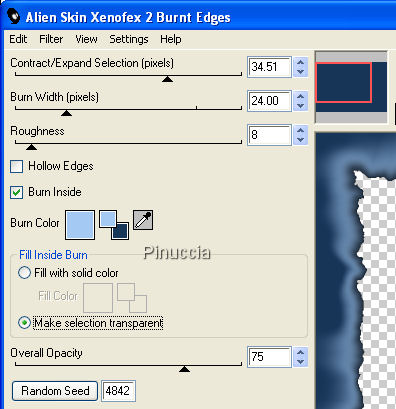 Effetti>Plugins>Alien Skin Xenofex 2.0 - Burnt Edges, con il colore di primo primo piano.