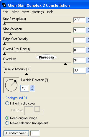 Ripeti l'Effetto Constellation con gli stessi settaggi, ma cliccando 1 volta su Random Seed.
