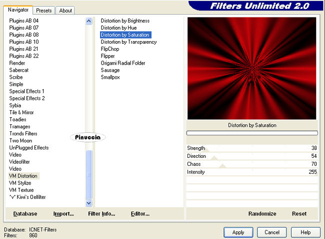Effetti>Plugins>Filters Unlimited - VM Distortion - Distortion by Saturation.
