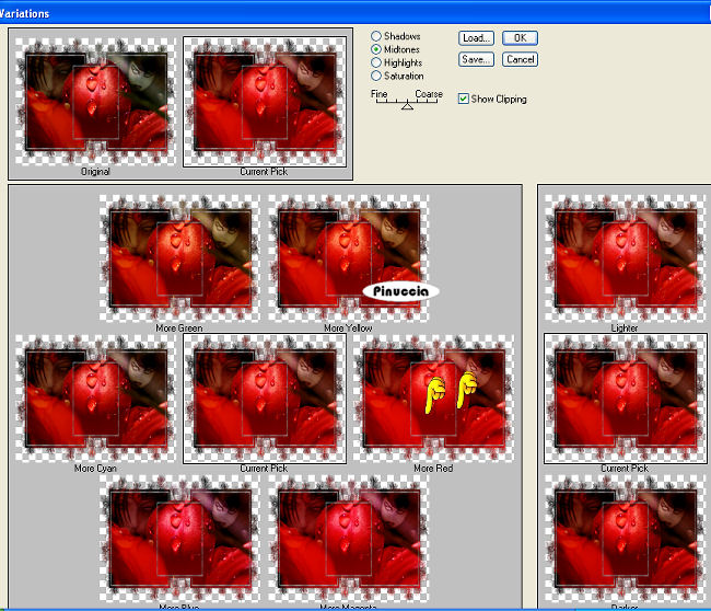 Effetti>Plugins>Adjust - Variations, 2 clic su More red.