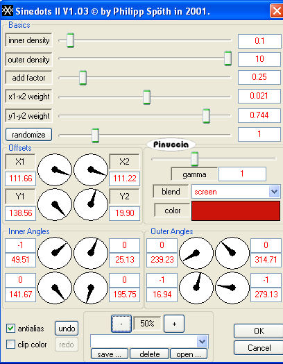 Effetti>Plugins>Dragonfly - Sinedots II, con il colore #cd150c.