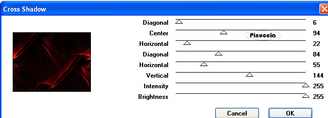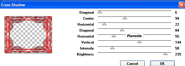 Ripeti l'Effetto Cross Shadow, cambiando il settaggio di Brighness con 235: