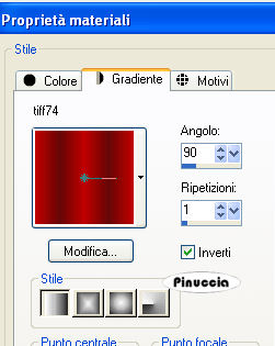 Passa il colore di primo piano a Gradiente, e seleziona il gradiente tiff74 con i seguenti settaggi: