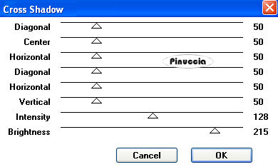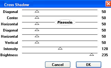 Effetti>Plugins>Graphics Plus - Cross Shadow, con i seguenti settaggi.