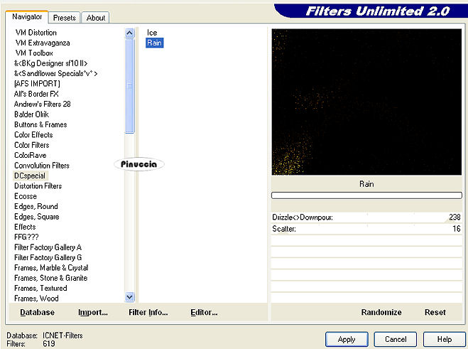 Effetti>Plugins>Filters Unlimited - DC Special - Rain: