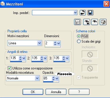 Effetti>Plugins>Dragonfly - Sinedots II, con il colore #cf9943 (o scegli, se preferisci, un altro colore dal tuo tube).