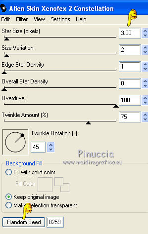 Ripeti l'Effetto Constellation, cambiando Star Size con 3.00 e cliccando una volta su Random Seed.