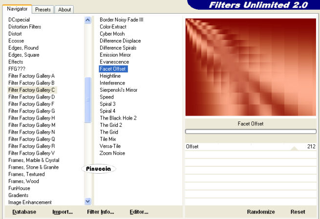 2. Effetti>Plugins>Filters Unlimited - Filter Factory Gallery C - Facet Offset con i settaggi standard.