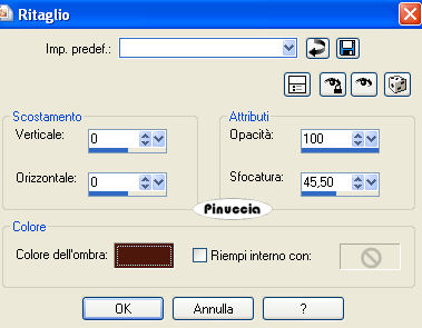 Effetti>Effetti 3D>Ritaglio, con un colore scuro scelto dall'immagine; il mio #4d180f.