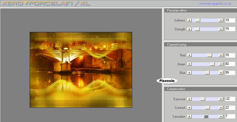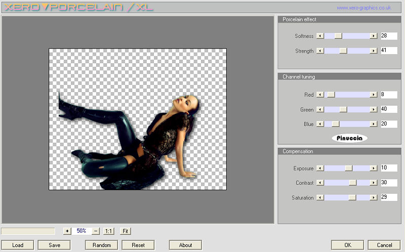 4. Effetti>Plugins>Xero - Porcelain XL, puoi scegliere il settaggio cliccando su Random finchè - nella finestra di anteprima - non vedi il risultato che ti soddisfa.