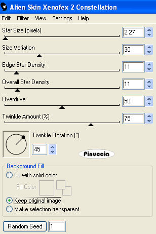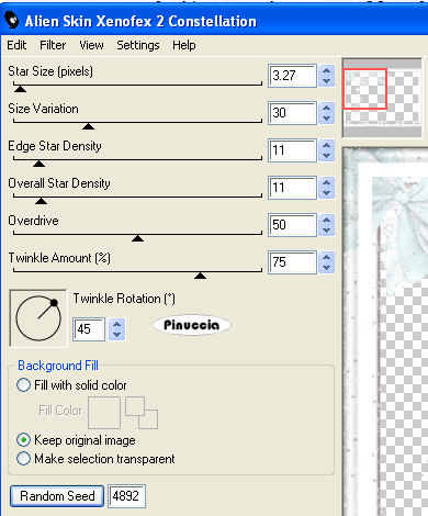 Ripeti l'Effetto Constellation, cambiando Star Size con 4,27 e cliccando una volta su Random Seed.