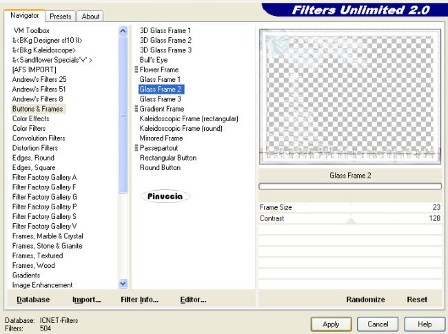 Effetti>Plugins>Filters Unlimited - Buttons and Frames - Glass Frame 2: