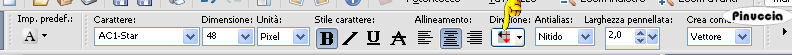 8. Attiva lo strumento Testo , font AC1-Star, con i seguenti settaggi.
