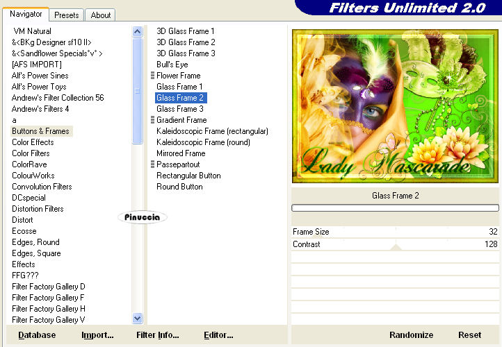 Effetti>Plugins>Filters Unlimited 2.0 - Buttons % Frames - Glass Frame 2.