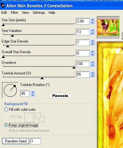 Ripeti l'Effetto Constellation con gli stessi settaggi, ma cliccando due volte su Random Seed.