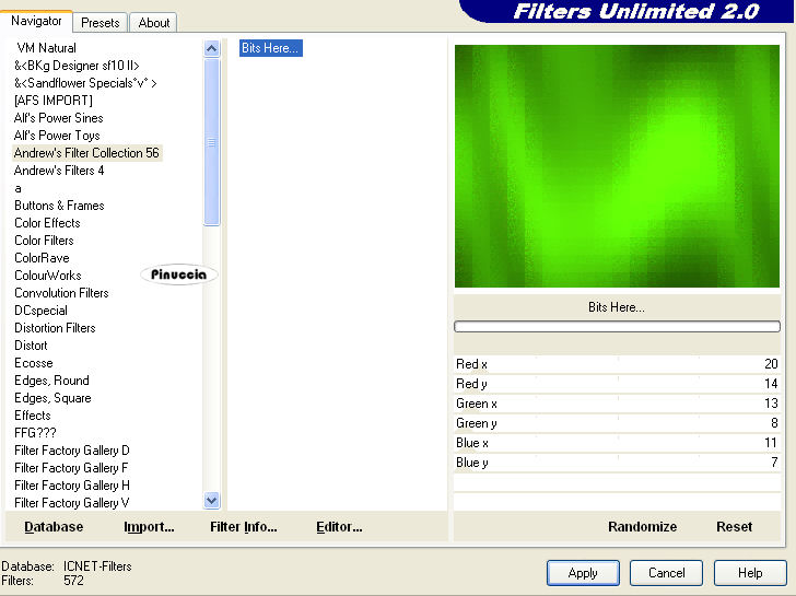 Effetti>Plugins>Filters Unlimited 2.0 - Andrew's Filter Collection 56 - Bits Here.
