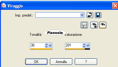 Regola>Tonalità e saturazione>Viraggio, con i valori corrispondenti al colore di primo piano.