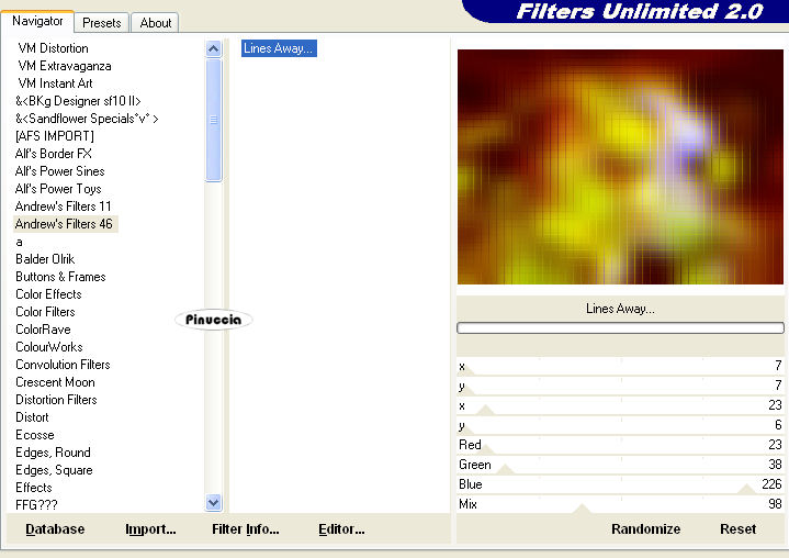 Effetti>Plugins>Filters Unlimited 2.0 - Andrew's Filters 46 - Lines Away.