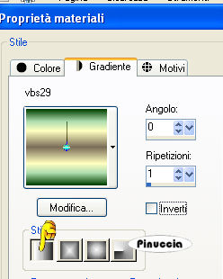 Imposta il colore di primo piano su Gradiente, e seleziona il gradiente vbs29 con i seguenti settaggi.