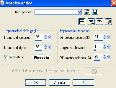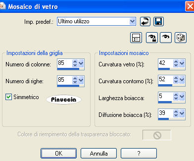Effetti>Effetti di trama>Mosaico antico, con i settaggi precedenti.