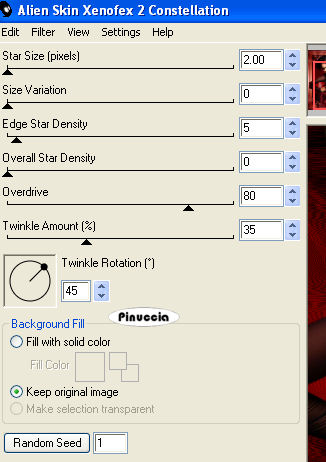 Ripeti l'Effetto Constellation con gli stessi settaggi, ma cliccando una volta su Random Seed.