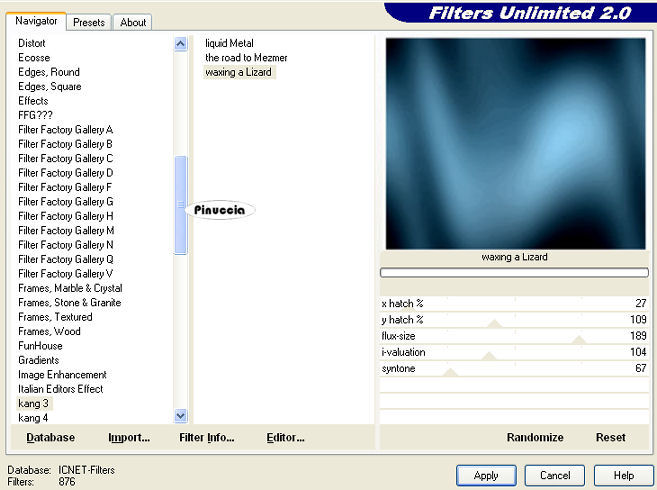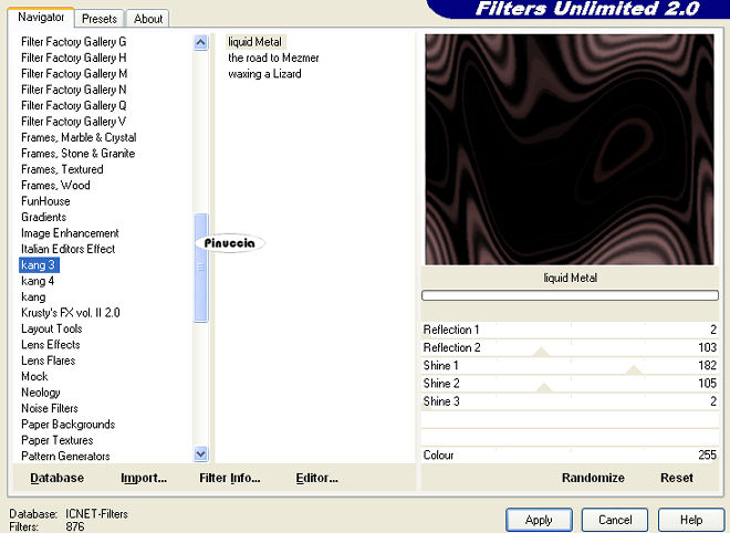 Effetti>Plugins>Filters Unlimited - Kang 3 - Liquid Metal.