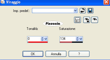 Regola>Tonalità e saturazione>Viraggio, con i settaggi precedenti.