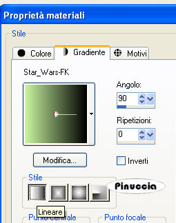 Passa il colore di sfondo a Gradiente, seleziona il gradiente Star-Wars-FK, con i seguenti settaggi: