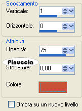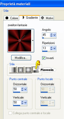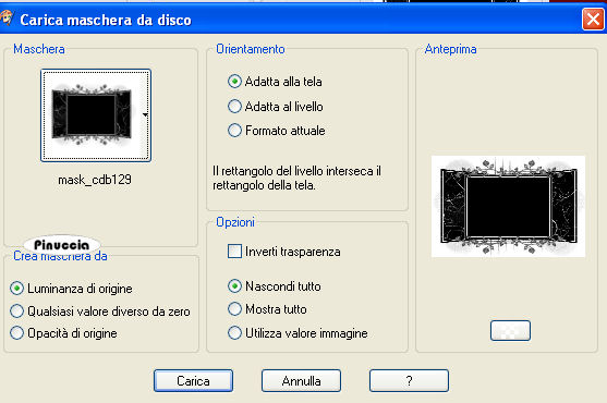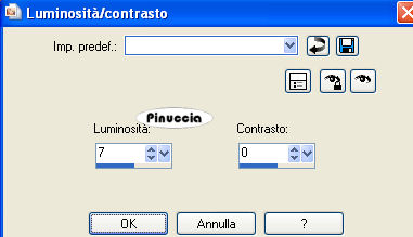 qui puoi trovare qualche risposta ai tuoi dubbi. Se l'argomento che ti interessa non è presente, ti prego di segnalarmelo. Questo tutorial è stato creato con PSP 9, ma può essere eseguito anche con le altre versioni di PSP. Per tradurlo, ho usato PSP X. Questo tutorial è una creazione di ©Christa e non può essere copiato su altri siti nè essere offerto per il download. Lo stesso vale per la mia traduzione. Il materiale viene da vari gruppi di condivisione. Il copyright appartiene ai rispettivi autori. Grazie ai creatori dei tubes che mettono a disposizione il loro lavoro in vari gruppi di condivisione. Rispetta il lavoro degli autori, non cambiare il nome del file e non cancellare il watermark. Occorrente: Materiale qui Per i tubes grazie Margit, Jet e Monique. Filtri: Xero - Porcelain XL qui ![]() Metti il gradiente nella cartella Gradienti. Metti le maschere nella cartella Maschere. Apri il font, con il resto del materiale, e minimizza tutto. 1. Imposta il colore di primo piano con un colore scuro dal tube; il mio #841211, e il colore di sfondo con il nero. Passa il colore di primo piano a Gradiente, e seleziona il gradiente zweiton-fantasie con i seguenti settaggi. ![]() Apri "textur@christa.pspimage" (o se preferisci la seconda textur.pspimage). Questa sarà la base del tuo lavoro. Qui, se stai usando altri colori, dovrai colorizzare la trama (sul Viraggio vedi qui). Selezione>Seleziona tutto. Livelli>Nuovo livello raster. 2. Apri "Love_Rose2_by Creative_Palace.jpg" e vai a Modifica>Copia. Torna al tuo lavoro e vai a Modifica>Incolla nella selezione. Selezione>Deseleziona. . Cambia la modalità di miscelatura di questo livello in Luce diffusa (o scegli il settaggio che più si adatta ai tuoi colori). Apri il tube "Tubed_by_monique42_3116.psp" e vai a Modifica>Copia. Torna al tuo lavoro e vai a Modifica>Incolla come nuovo livello. Immagine>Rifletti. Sposta a destra, vicino al bordo.Abbassa l'opacità di questo livello al 54%. ![]() 3. Apri il tube "jet_man1_juli-2007.psd" e vai a Modifica>Copia. Torna al tuo lavoro e vai a Modifica>Incolla come nuovo livello. Spostalo sul bordo a sinistra e un po' più in basso.Cambia la modalità di miscelatura di questo livello in Luce diffusa. ![]() 4. Apri il tube "MMDesignz_Cr043128.pspimage" e vai a Modifica>Copia. Torna al tuo lavoro e vai a Modifica>Incolla come nuovo livello. Immagine>Ridimensiona, all'85%, tutti i livelli non selezionato. Immagine>Rifletti. Sposta il tube in basso al centro, sul bordo.![]() Effetti>Effetti 3D>Sfalsa ombra, con il colore nero. ![]() Livelli>Unisci>Unisci tutto. . Effetti>Plugins>Xero - Porcelain XL, puoi scegliere il settaggio cliccando su Random finchè - nella finestra di anteprima - non vedi il risultato che ti soddisfa. I miei settaggi. ![]() la versione XL non funziona se non viene rimossa dalle Preferenze Files la versione precedente. Regola>Luminosità e contrasto>Luminosità e contrasto: ![]() 5. Immagine>Aggiungi bordatura, 2 pixels, simmetriche, con il colore nero. Livelli>Nuovo livello raster. Riempi il livello con il gradiente.Livelli>Carica/Salva maschera>Carica maschera da disco. Cerca e carica la maschera mask_cdb129: ![]() Livelli>Unisci>Unisci gruppo. Livelli>Unisci>Unisci tutto. 6. Selezione>Seleziona tutto. Livelli>Nuovo livello raster. Riempi con il colore nero.Selezione>Modifica>Contrai - 3 pixels. Riempi con il gradiente.Selezione>Modifica>Contrai - 5 pixels. Riempi con il colore nero.Selezione>Modifica>Contrai - 3 pixels. Premi sulla tastiera il tasto CANC. Selezione>Deseleziona. Apri il wordart AimelleCration_text01, scegli un testo e vai a Modifica>copia. Torna al tuo lavoro e vai a Modifica>Incolla come nuovo livello. Posiziona il testo come preferisci.Effetti>Effetti 3D>Sfalsa ombra, con un colore dell'immagine. ![]() Aggiungi il tuo nome e/o il tuo watermark su un nuovo livello. Livelli>Unisci>Unisci tutto e salva in formato jpg. Se hai problemi o dubbi, o trovi un link non funzionante, o anche soltanto per un saluto, scrivimi. 28 Ottobre 2009 |