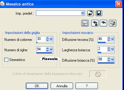 Seleziona la maschera mask_cg628 con i seguenti settaggi: