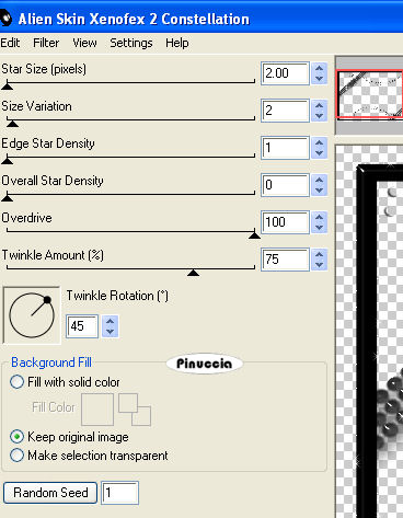Ripeti l'Effetto Constellation con gli stessi settaggi ma cliccando due volte su Random Seed.